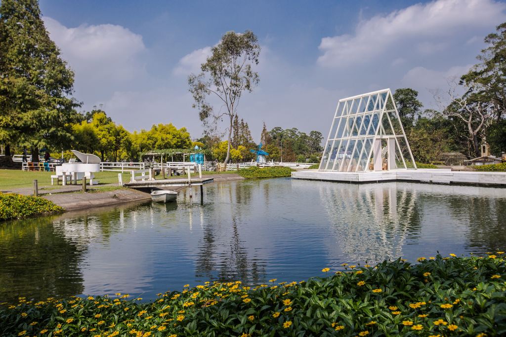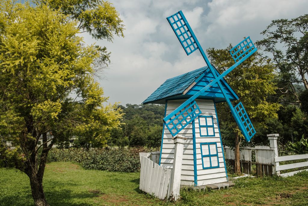 農場主人以北海道富田農場為設計藍圖,占地2公頃的彩虹花田,種有薰衣草、波斯菊、向日葵、七彩金魚草等花卉,一年四季花季不間斷;停車場旁的玫瑰園,傳遞浪漫無限的戀人情懷。除了艷麗動人的花草集錦,戶外造景,水晶教堂、復古汽車、馬車,地中海風車等超人氣攝影景點,也常見新人與情侶在此留影。