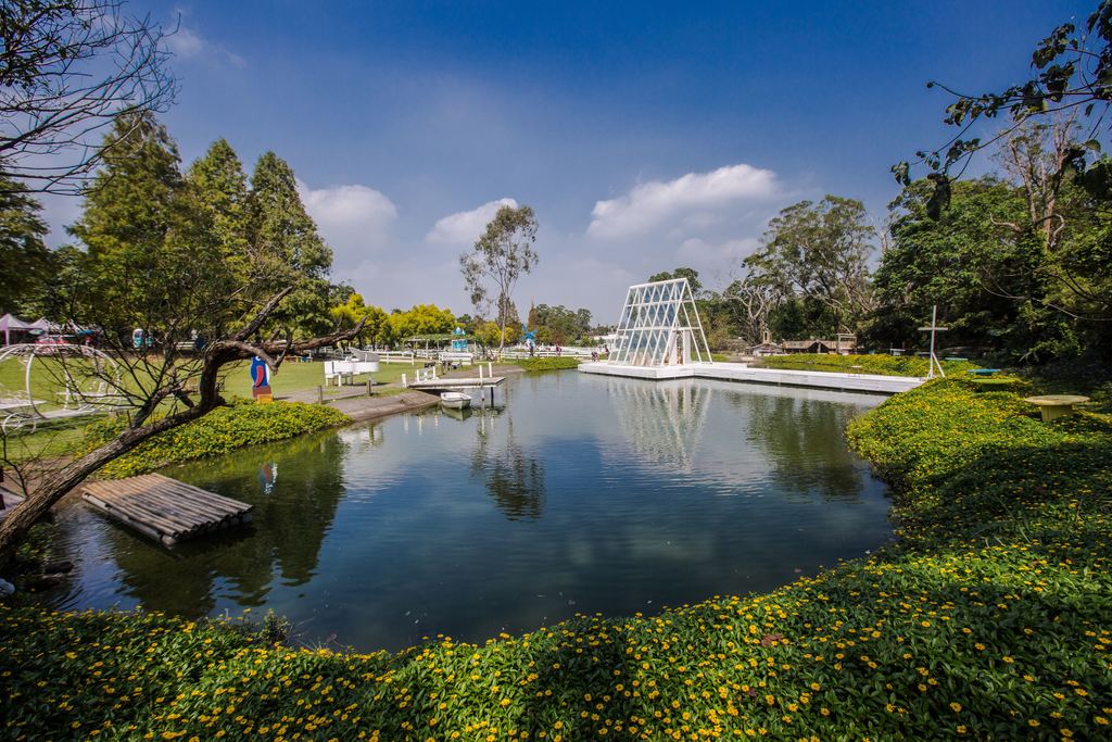 農場內木造米黃色建築-「愛情城堡」為景觀餐廳,二樓不儘可欣賞美麗花田,還能眺望遠山,視野一級棒。餐點共有中式鄉野綠食餐及西式風味套餐,食材多採用自栽自種,並以少鹽少油方式料理,美味與健康兼具。另於溪邊設有烤肉區,讓旅客在藍天白雲下與親朋好友大啖美食,共度歡樂用餐時光。