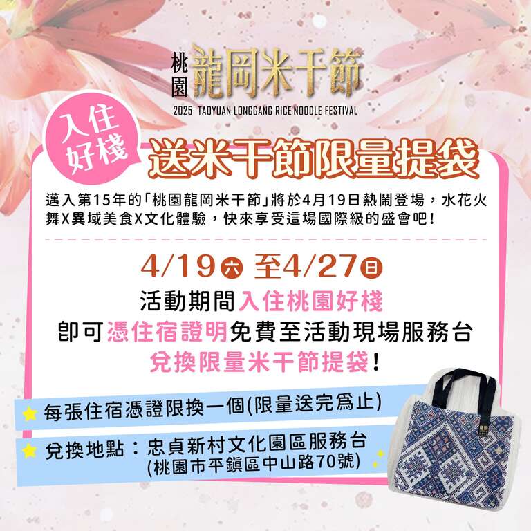 園好棧,即可憑住宿証明免費至活動現場服務台兌換限量米干節提袋!