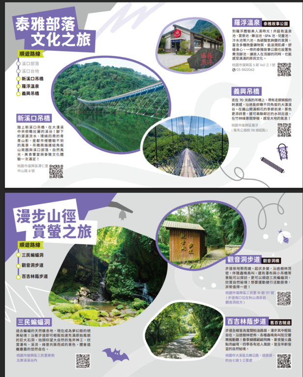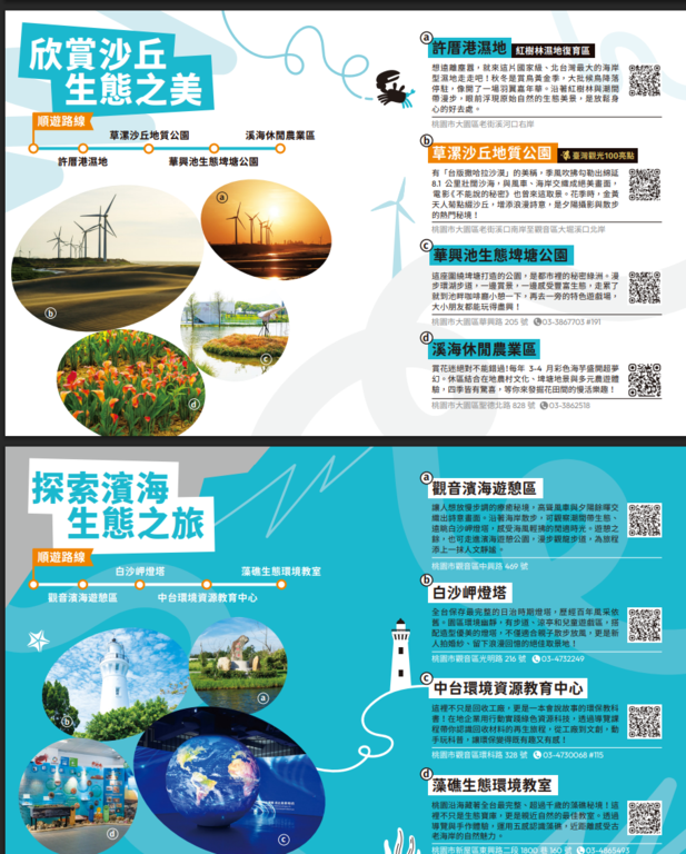 桃園市政府觀光旅遊局於114年7月18日宣布全新觀光摺頁正式亮相!以五大主題旅遊推出風格鮮明的小冊系列,結合食、宿、遊、購、行等觀光資源,全面呈現桃園多元且精彩的旅遊魅力。此次摺頁內容涵蓋濱海風光、山城秘境、文化體驗、美食品味及親子手作等面向,讓旅客依興趣自由選擇,打造專屬於自己的桃園旅遊體驗。