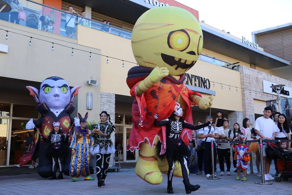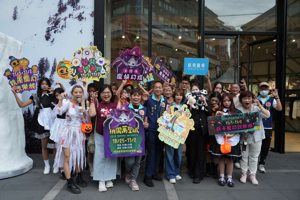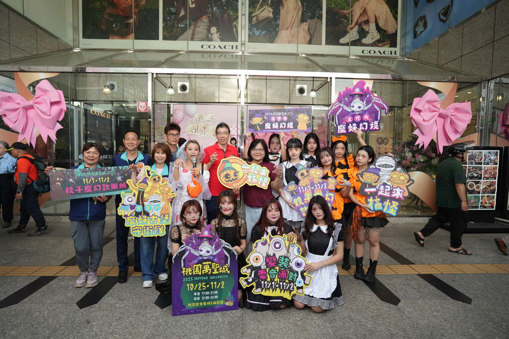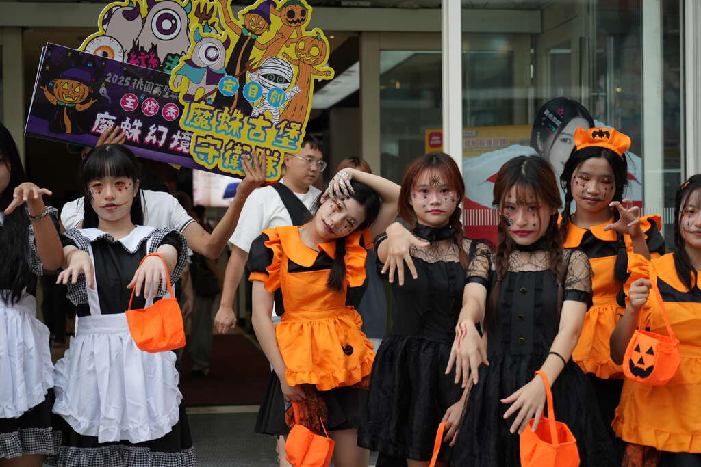 「2025桃園萬聖城」預計10月24日(五)開始試營運後,為期9天的「2025桃園萬聖城」於10月25日(六)至11月2日(日)將在桃園藝文廣場和藝文綠園道盛大登場!為了讓民眾提前感受萬聖節氣氛,桃園觀旅局與商圈業者合作推出快閃活動,為桃園萬聖城「尋寶熱潮」熱身!10月18日,夜光踩街定目劇「魔蛛古堡守衛隊」提前現身快閃青埔「置地廣場 桃園」;10月19日,中壢高商韓研社與勁舞社「群魔亂舞鬧商圈」,化身各式變裝鬼怪現身街頭,快閃現身統領廣場、新光三越及遠東百貨三大地標;10月22日則前往藝文廣場及市立圖書館總館快閃宣傳。結合商圈互動、街頭藝人與年輕族群創意,營造出萬聖節前夕的歡樂氛圍。