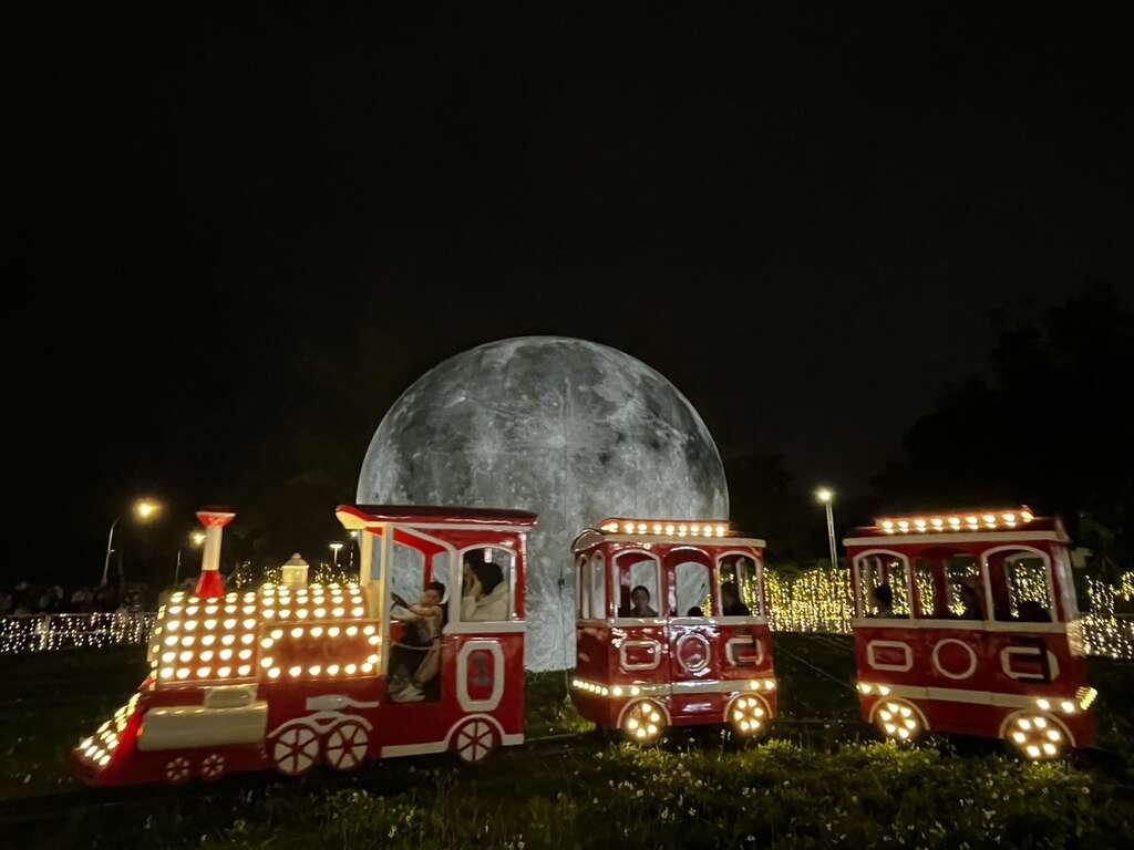 此外,燈區特別規畫的「月球小火車」更成為親子遊客的首選。這項結合未來科技感的免費遊樂設施,讓大小朋友彷彿穿梭在銀河之中,成為家長口耳相傳的「最強溜小孩神位」,網友紛紛表示:「桃園燈會不只漂亮,還超好玩!」