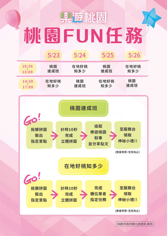 除了豐富的旅遊資訊與主題遊程,桃園館也準備闖關活動,只要完成拼圖指定任