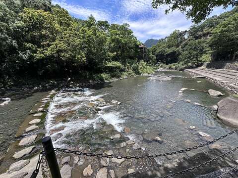 溪流水域深淺不一,水底有滑溜的石頭,不可奔跑或追逐,以免滑倒受傷。