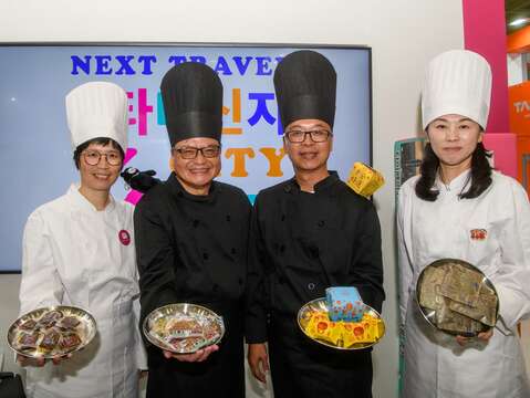 桃園聯手北台四市再出擊!2025首爾國際觀光展(SITF)盛大登場,台灣北部四大城市—基隆、台北、新北、桃園—共同設置「타타신지 대만(桃台新基 台灣)」主題展區,取自韓文諧音為「神奇的地方」,搶攻韓國自由行市場。桃園以韓國男團CIX拍攝的《Hashtag Travelog桃園篇》節目片段吸引現場高度關注,展現強大旅遊魅力。桃園觀光旅遊局代理局長王麗娟更驚喜現身,化身話題韓劇《黑白大廚》角色快閃登場,並以經典大溪豆干美食推廣桃園,成功吸睛。