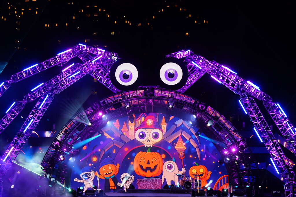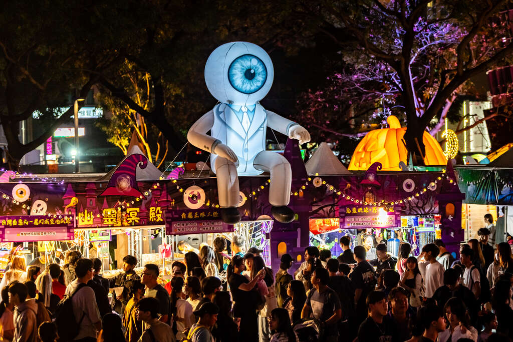 觀光旅遊局陳靜芳局長表示,今年最大特色為以13米高的「 魔幻蜘蛛王」守護整個「魔蛛古堡」主題區,250支的燈光投射打 造的主燈秀是今年最大亮點,融入探險尋寶與沉浸式體驗的12座主 題裝置及近30件打卡拍照作品,也吸引眾多民眾拍照分享;此外, 今年首創量身訂作的超大發光巨偶「夜光踩街」定目劇《 魔蛛古堡守衛隊》,每天定時演出, 帶來獨一無二的視覺饗宴和夜間魔幻巡遊, 讓大小朋友盡情享受創意與驚喜並存的萬聖節盛典。 這場結合夜晚巡演光影,萬聖變裝競賽、街舞電音派對、親子互動, 主題市集及消費抽獎等多元展演活動,吸引全台民眾參與, 現場氛圍精彩非凡,成為台灣年度最具代表性的萬聖節活動。